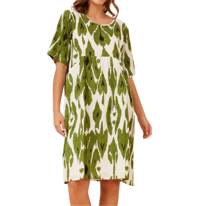 Olive Abstract Cotton Dress
